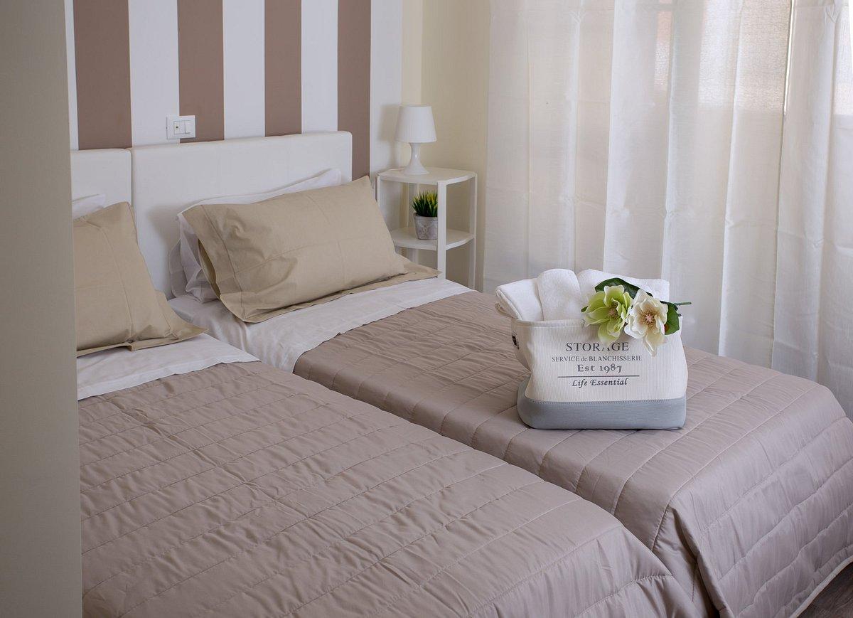 Double room with single beds equipped with bathroom and suite ;with shower, bidet, hairdryer and courtesy set. The accommodation is cl It is equipped with a flat-screen TV, minibar, tea and coffee making facilities, wardrobe, and city views.