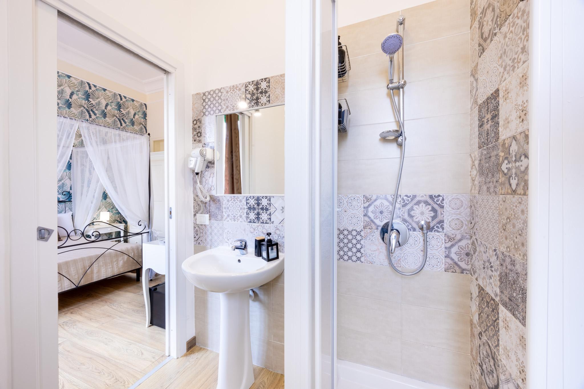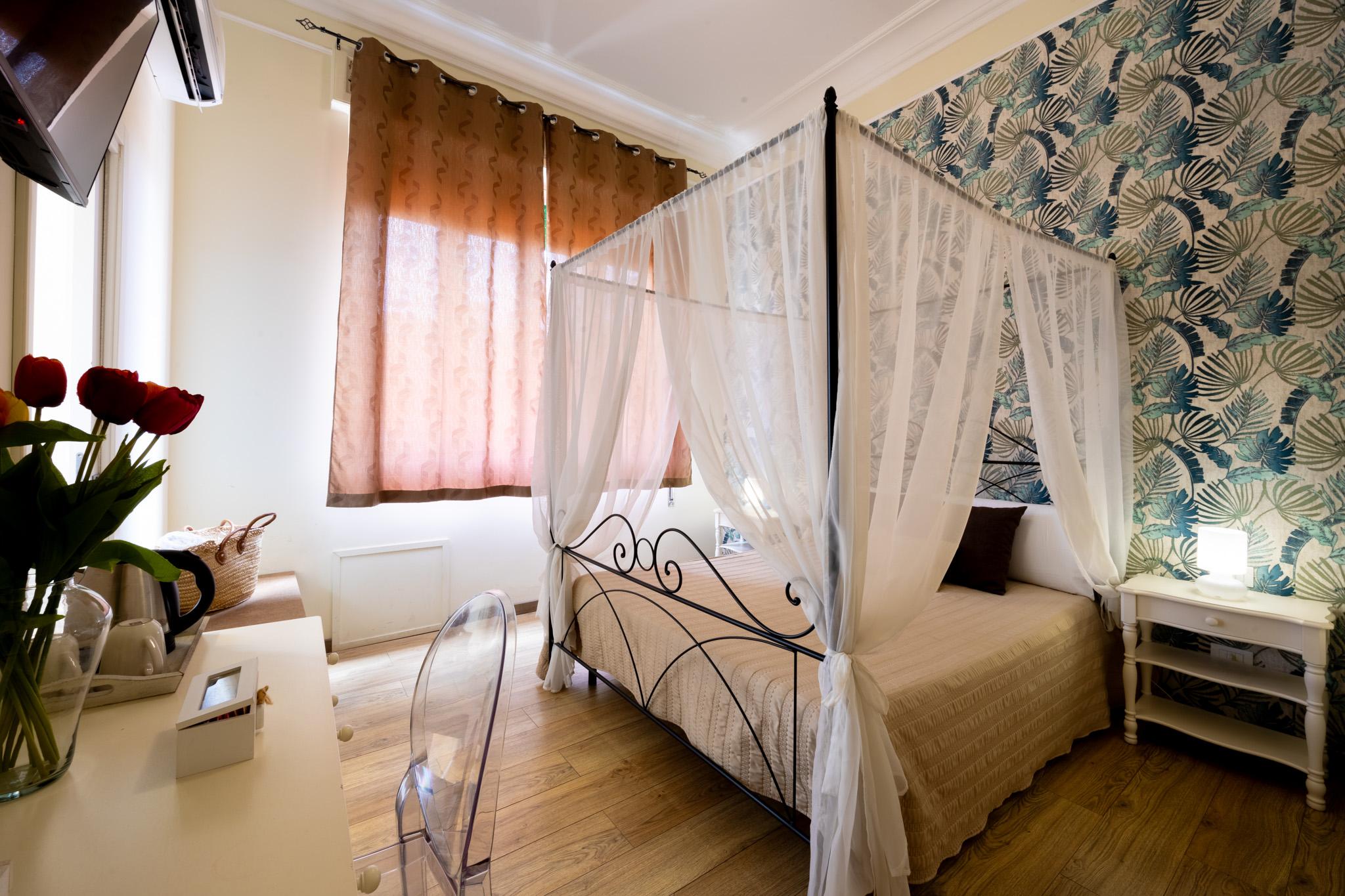 Double room equipped with bathroom en suite with doc cia, bidet, hairdryer and courtesy set. The accommodation is air-conditioned to and has a flat-screen TV, minibar, set for preparation of tea and coffee, cupboard and city view.